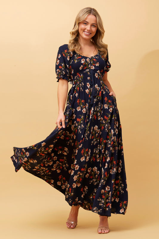 Molly Floral Boho Maxi Dress- Multi Navy D509215