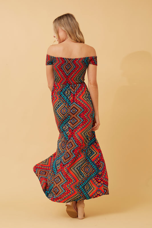 Robin Abstract Print Maxi Dress - Multi Red D518442