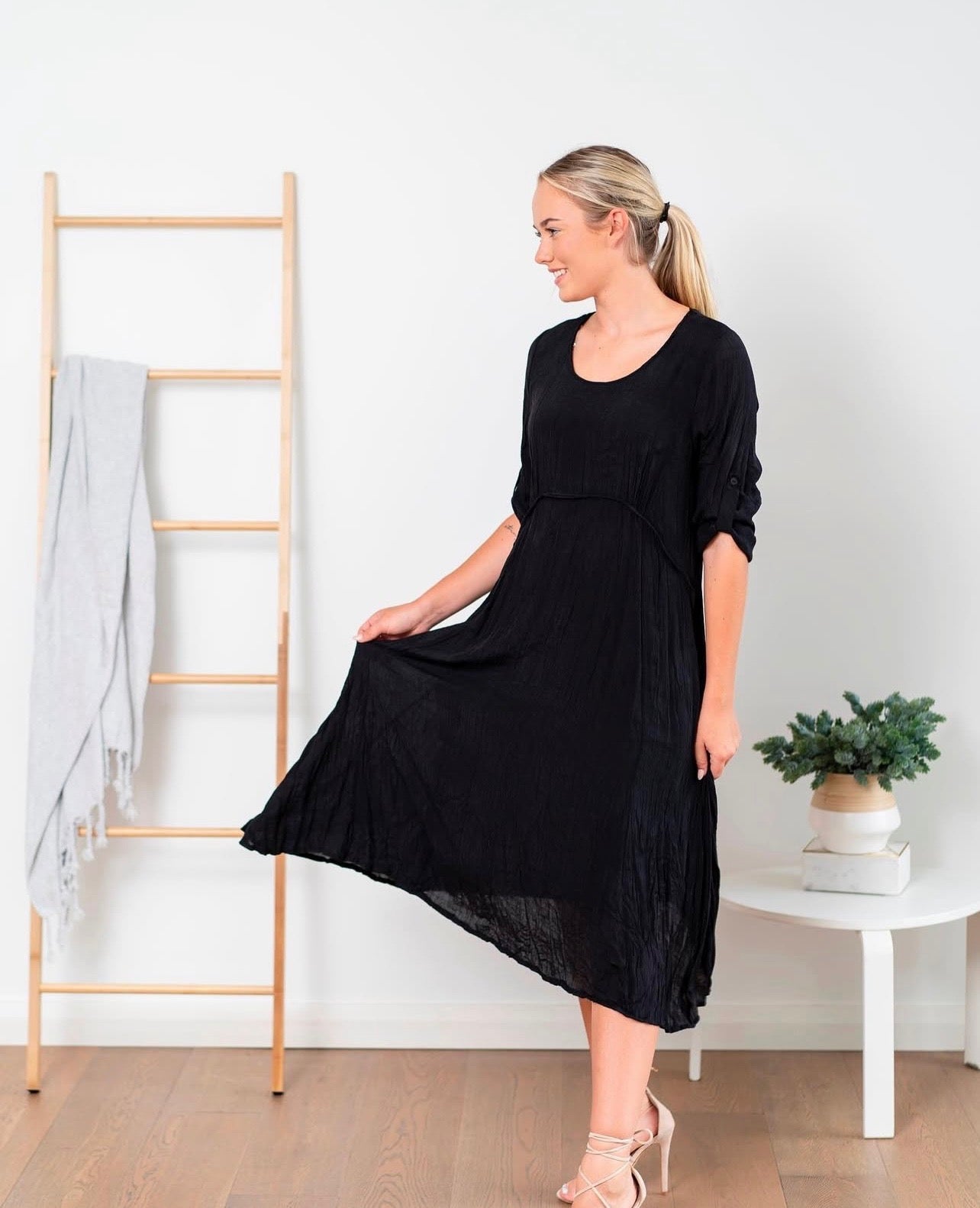 Anni Tunic Midi Dress - Black 38638K
