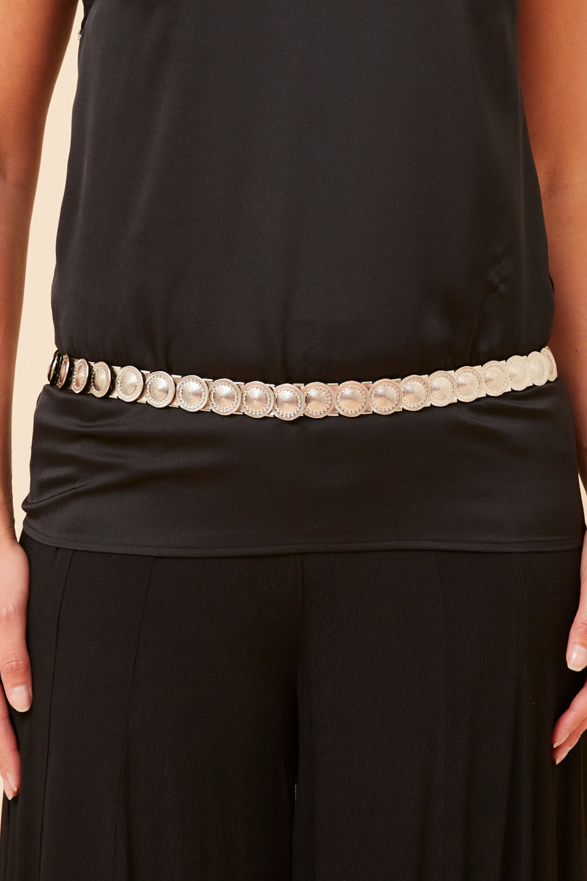 Elevate your style with the Buckle Belt. Designed for this season, this silver belt adds a touch of glamour and can be worn high or low waisted for a cinched look. Say goodbye to boring outfits and hello to a snatched waist.
