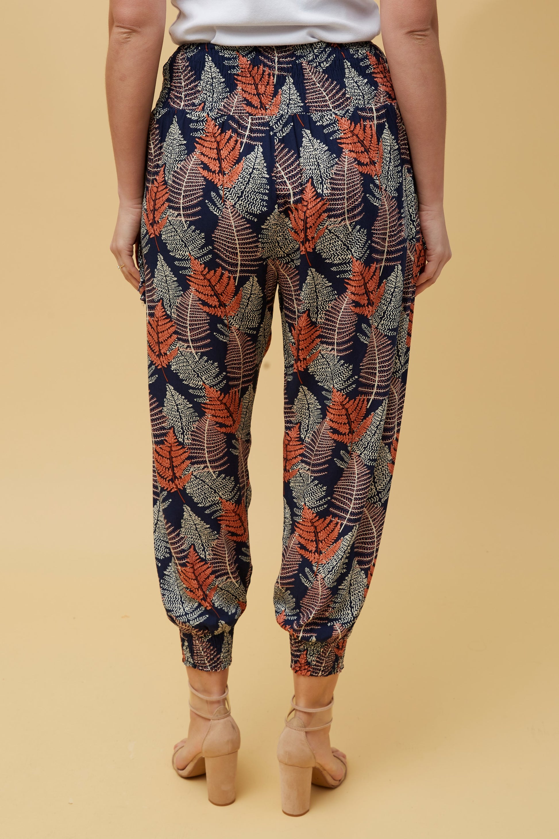 Our harem pants feature a shirred elastic waist and cuffs for a comfortable and relaxed fit. With functional side pockets and tie details, these pants offer both style and convenience. Pair it with a T-shirt or tank top to complete the look.