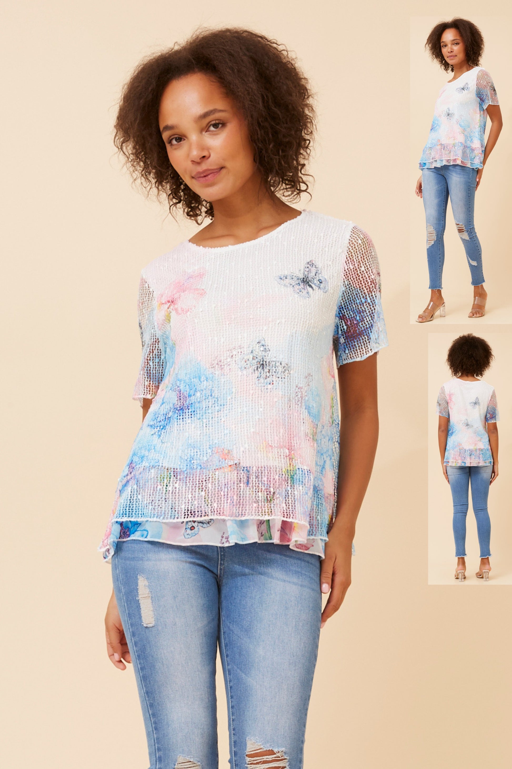 Introducing our Niki Butterfly Printed Top! With its playful butterfly print and double layer design, this top is sure to add a touch of fun to your wardrobe. Perfect for any occasion, this top is a must-have for any fashion-forward individual.