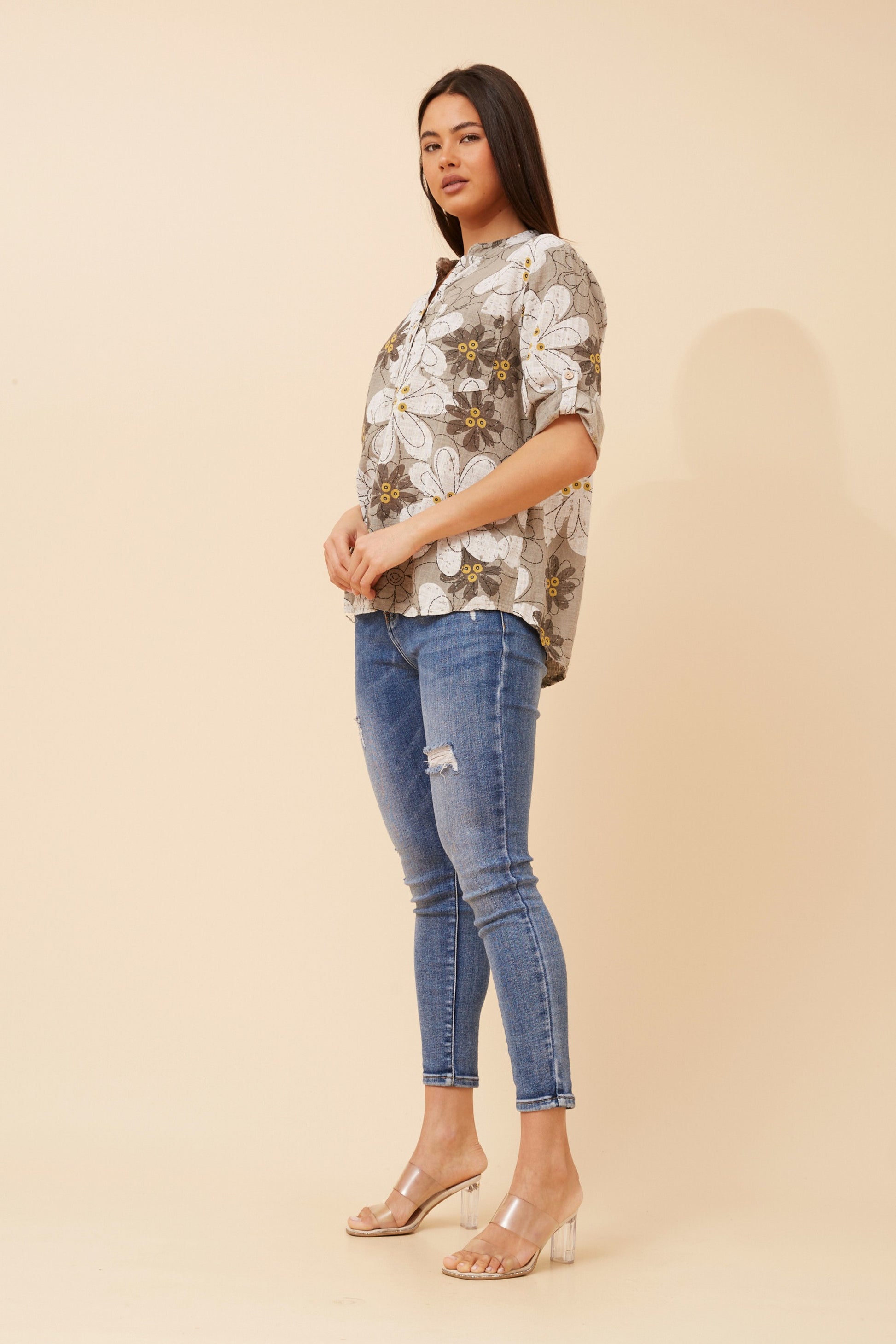Add a splash of charm to your everyday style with the Nova Italian Floral Top. This beautiful blouse is designed to effortlessly elevate any outfit. Pair it with your favourite jeans and boots or sandals for a playful, fresh look that’s perfect from casual everyday to holiday look!