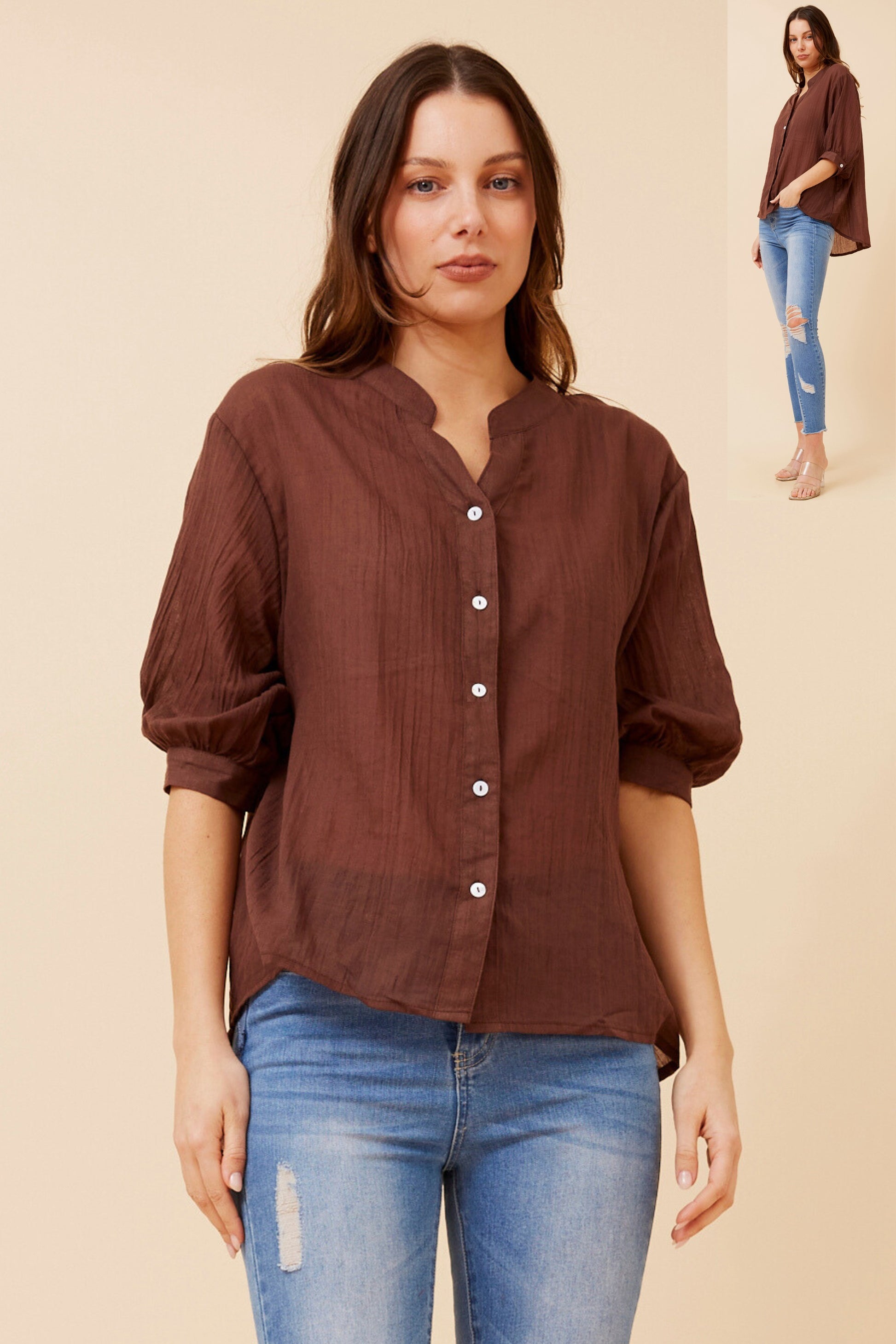 Rosa Shirt with Back Button Detail -Bitter Chocolate T511586