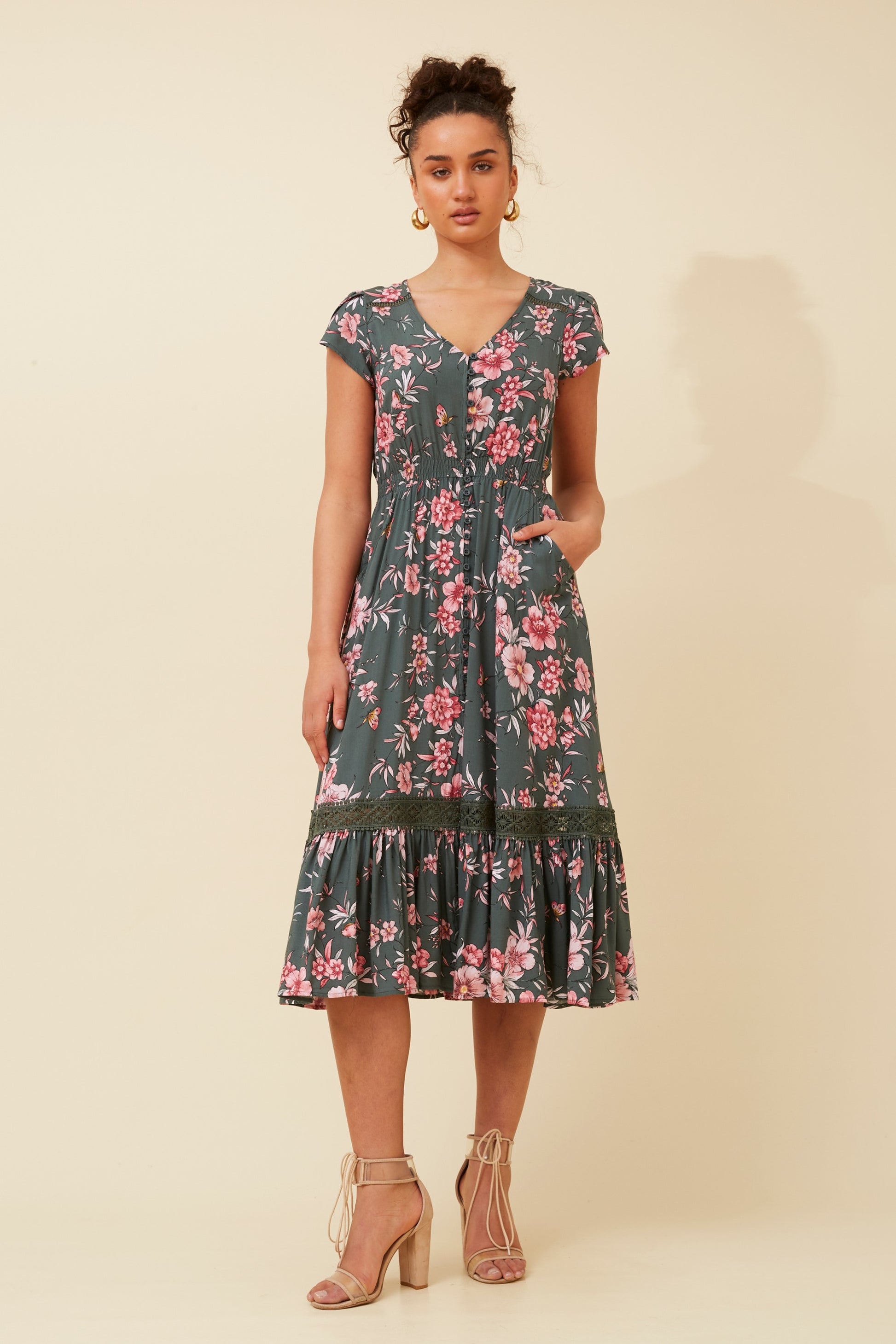 Serena Floral Print Midi Dress - D519854