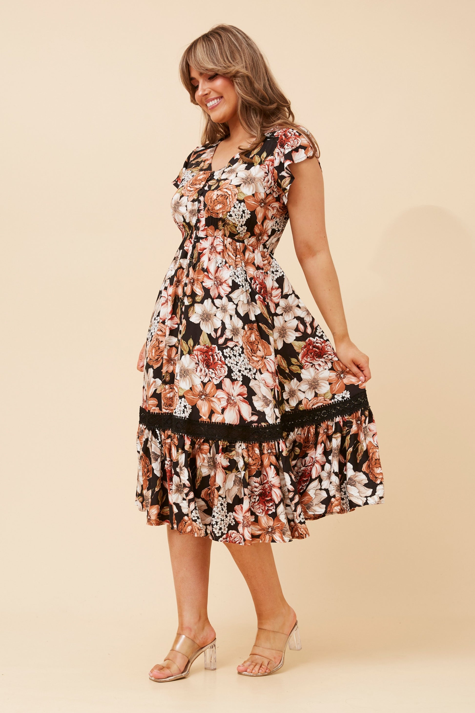 Say hello to our bestselling sensation! This floral print midi dress is the ultimate wardrobe chameleon—dress it down with casual sandals for weekend wandering or elevate it with sleek heels for nights out that demand a little extra sparkle. It's the kind of piece that works as hard as you do, effortlessly transitioning from day to night. With its timeless floral charm and flattering silhouette, you'll find yourself reaching for it again and again. Pure versatility wrapped in style!