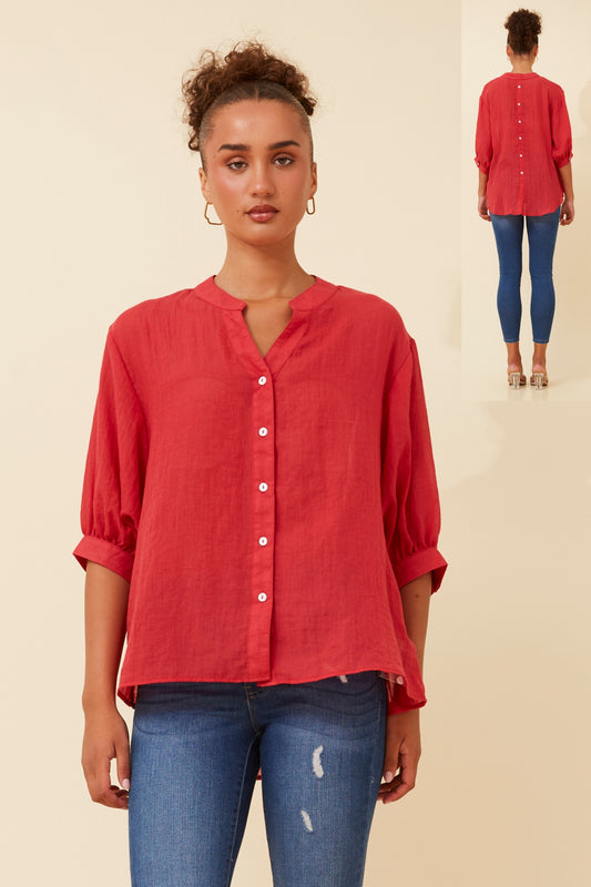 Rosa Shirt with Back Button Detail - Rich Red T511586
