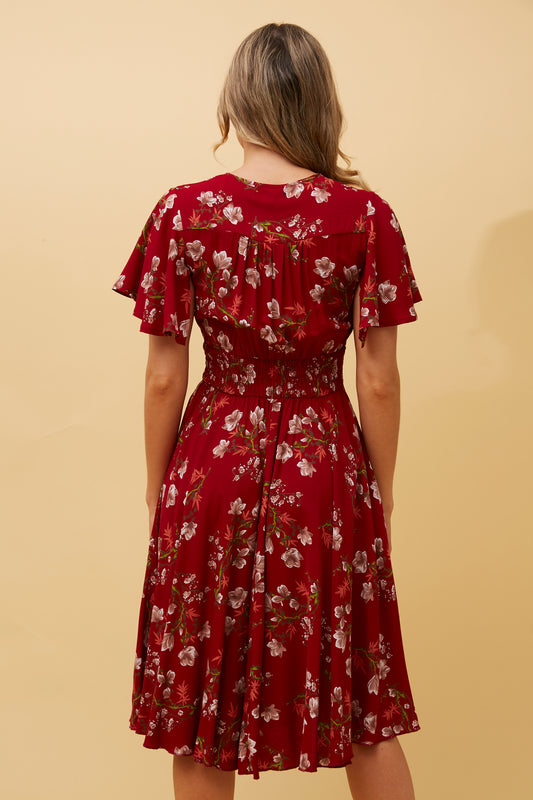 Ivona Floral Boho Midi Dress - Multi Red D511977